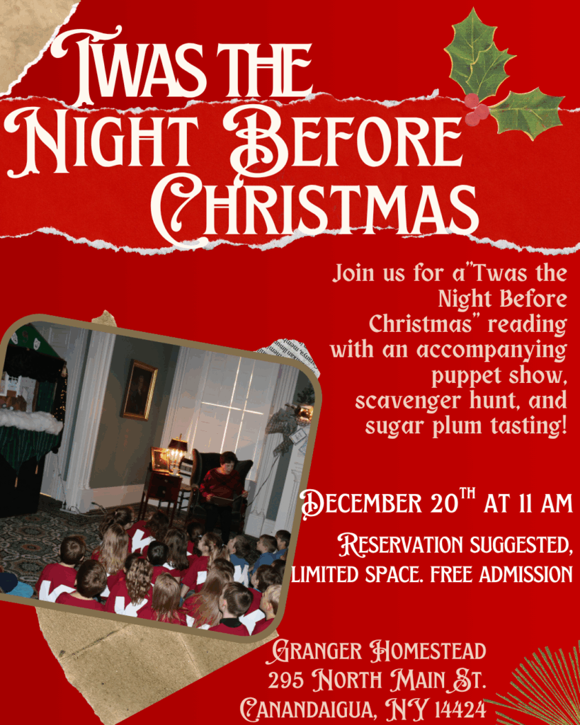 Saturday December 20th, 2025. Come enjoy the reading and puppet show of “The Night Before Christmas”. Sampling of sugar plums too!